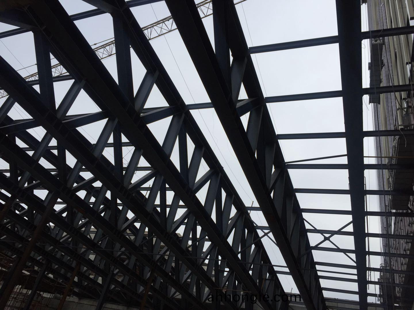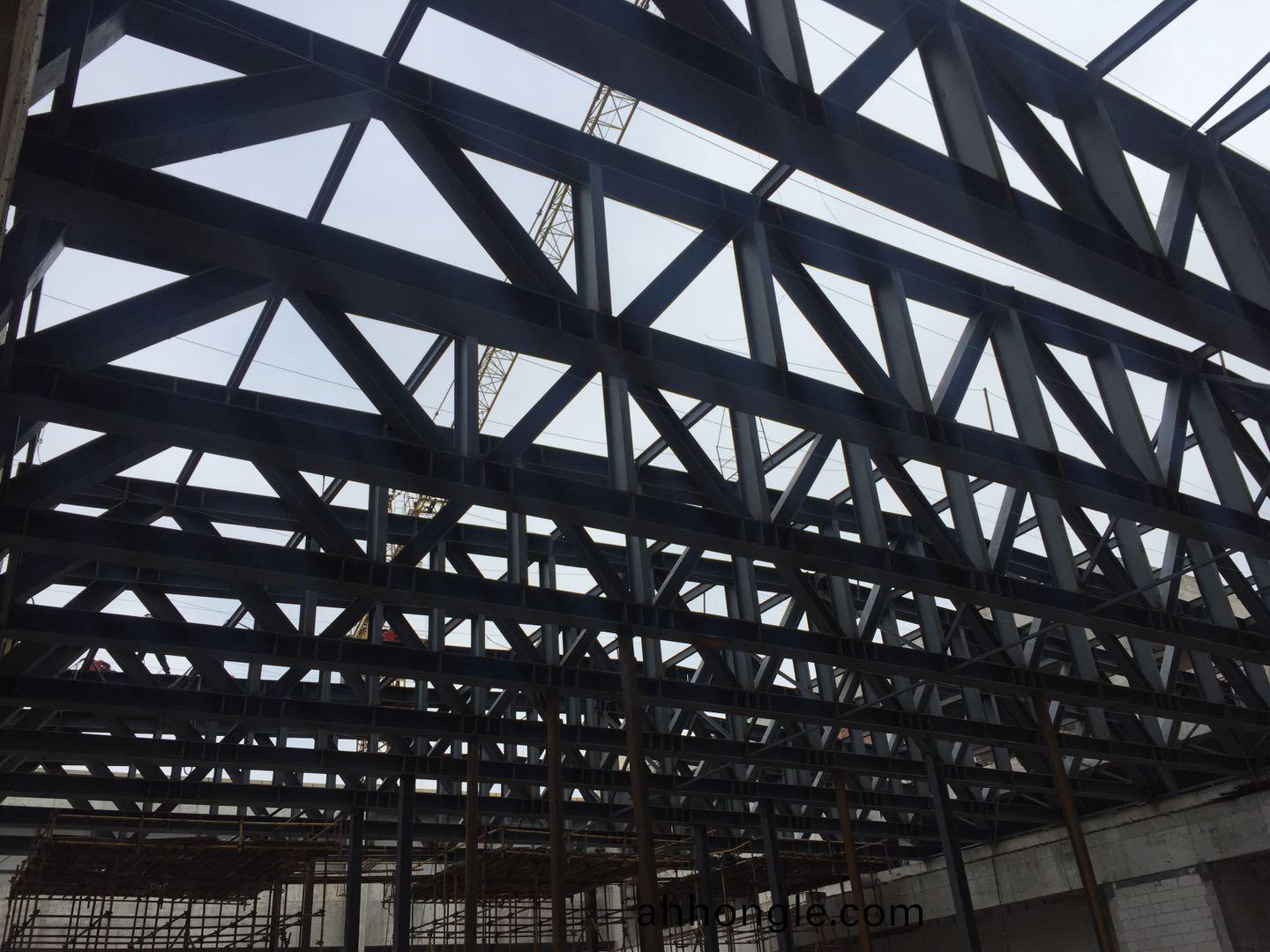 項目總佔地麵積19.98畝,其主(zhu)體(ti)擬(ni)建一座五星級賔館,總建築麵積約61150平方(fang)米(其中地上40235平方米,地下20915平方米)。地下2層(ceng),主樓(lou)地上24層,建築高(gao)度(du)98m,裠房地上5層,建築高(gao)度32m。裠樓鋼結構(gou)屋蓋(gai)爲(wei)空間桁架結構,包含16榀平麵桁架(jia)及(ji)桁架間垂直及水平支撐。桁架最高點處標高32.138m,長度31m,高度2.2m~2.96m之間,桁架下絃支承于標高28.772m的(de)混凝土樑上。